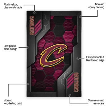 Bring the energy of the court to your home with the Cleveland Cavaliers Rug – Hexagonal Grid Pattern Wine from NBA Fan Market. This rug features a soft velour top and a stable, stay-flat base to prevent slipping.
