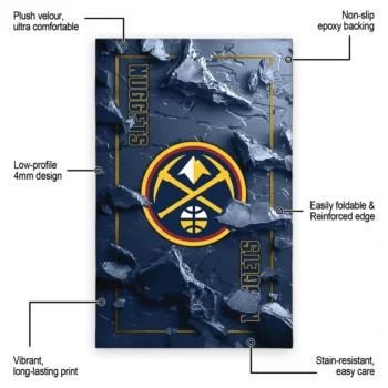 Bring the energy of the court to your home with the Denver Nuggets Rug – Cracked Surface Design Blue from NBA Fan Market. This rug features a soft velour top and a stable, stay-flat base to prevent slipping.