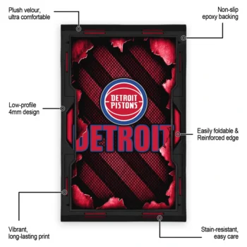 Bring the energy of the court to your home with the Detroit Pistons Rug – Cracked Surface Design Red from NBA Fan Market. This rug features a soft velour top and a stable, stay-flat base to prevent slipping.