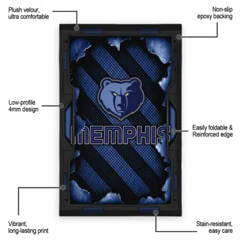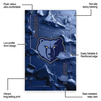 Bring the energy of the court to your home with the Memphis Grizzlies Rug – Cracked Surface Design Blue from NBA Fan Market. This rug features a soft velour top and a stable, stay-flat base to prevent slipping.